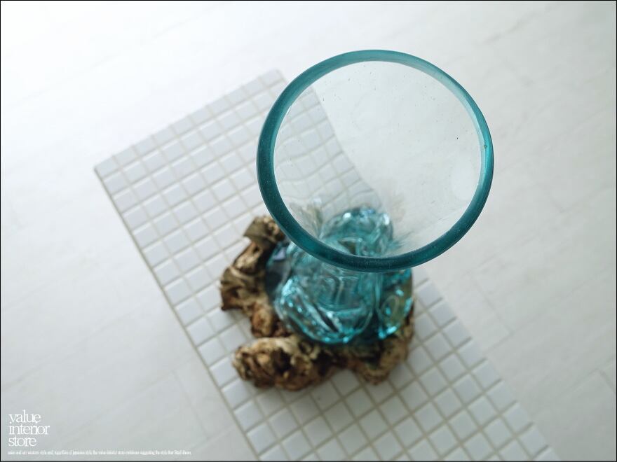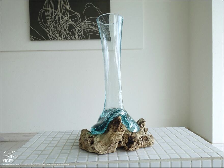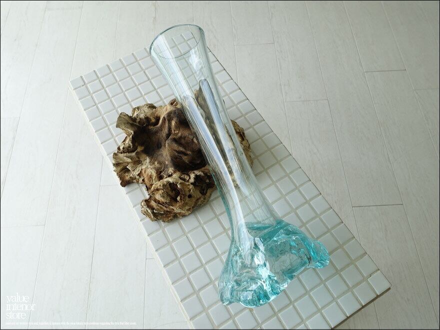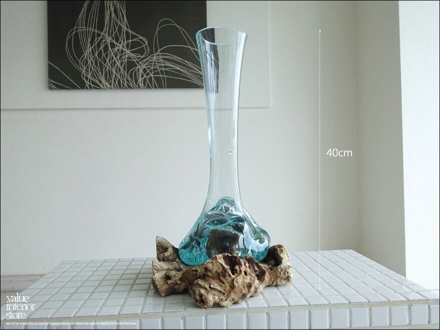 硝子フラワーベースTall40cm 花瓶 プリミティブガラスベース 手作り 一輪挿し 一点物 ハンドメイド 無垢材 自然な様