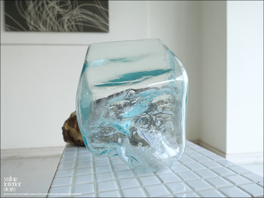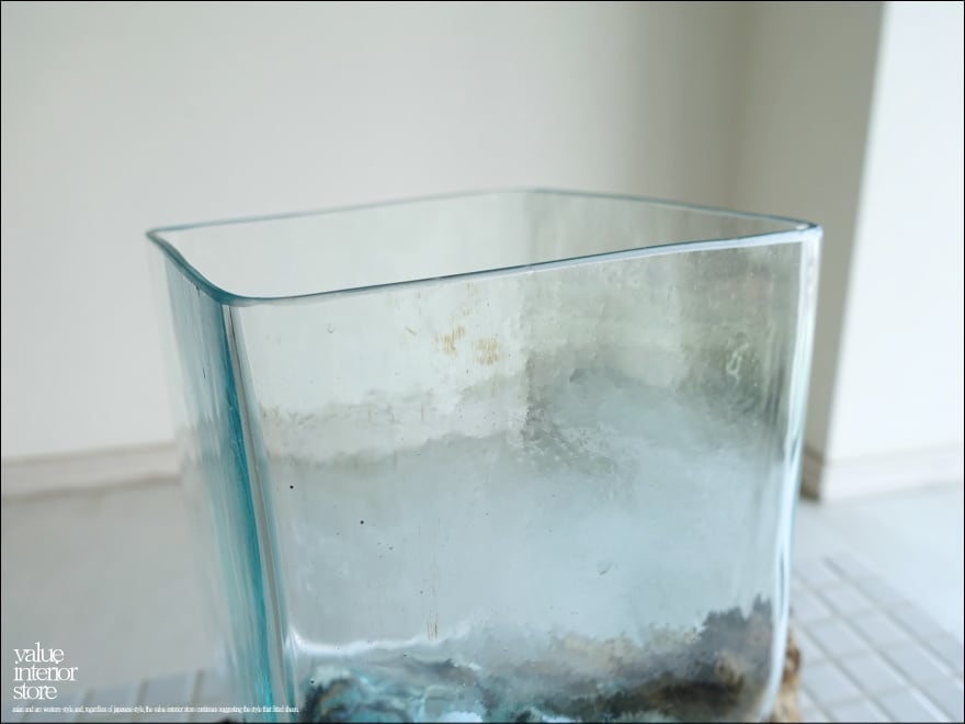 硝子フラワーベースSqli / L-10 花瓶 メダカ鉢 めだか鉢 プリミティブガラスベース 吹きガラス 手作り 一点物 自然な様