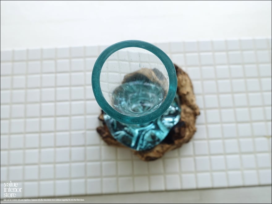 硝子フラワーベースSin09 花瓶 プリミティブガラスベース 手作り 一輪挿し 一点物 ハンドメイド 無垢材 自然な様