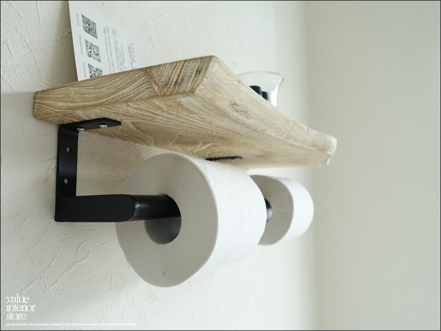 耳付きのチーク材の棚板が素敵な2連式のトイレットペーパーホルダー。ペーパーの設置も横からサッと通すだけで、棚板にはお気に入りのインテリア小物やグリーンなどを飾っていただけます。あなただけのプライベートルームづくりにぜひお役立てください。