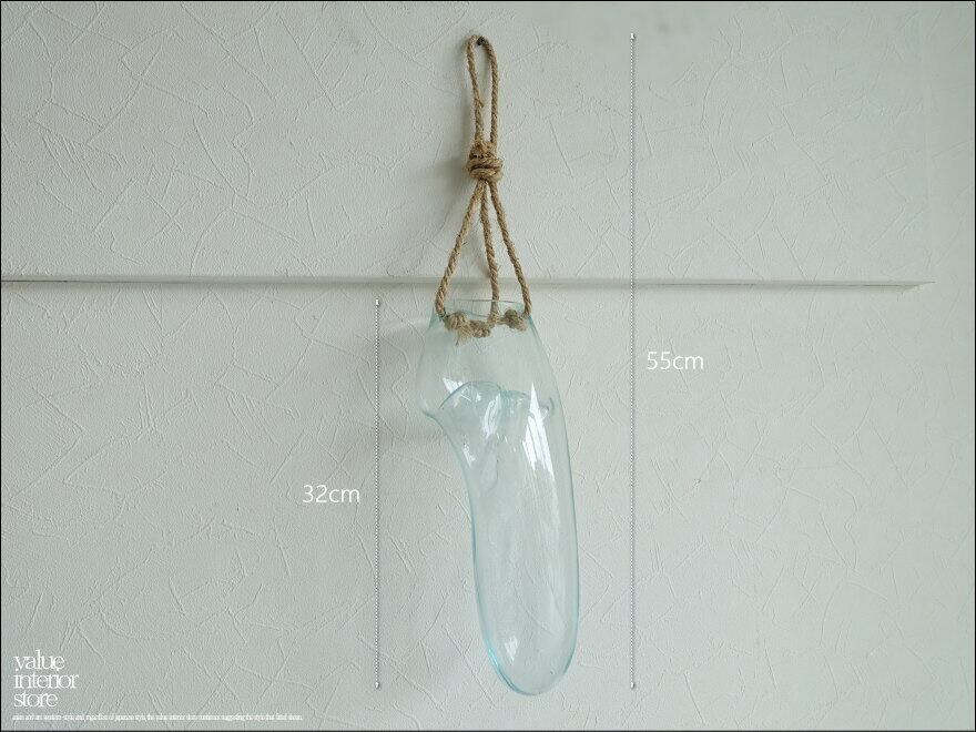 ハンギングフラワーベースNawaM02 花瓶 プリミティブガラスベース 壁掛け 花器 吹きガラス 手づくり ウォールベース 一点物 idavase