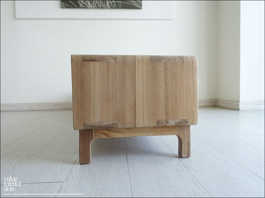 シンプルですが、フシなどの多い材料を選びましたので、ペースダウンした雰囲気も存分にお楽しみいただけます。仕上げもワックスフィニッシュのみのシンプルさで、変わり行く色の変化(いわゆるチークカラーへ)もお楽しみいただけます。この機会にぜひどうぞ! (バリューインテリアストアオリジナル)