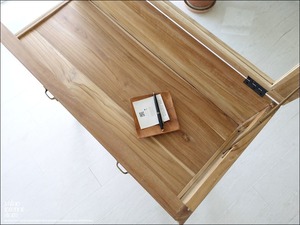 ・素材 : チーク総無垢、ガラス、真鍮(取っ手)、(引き出しの底のみ合板)