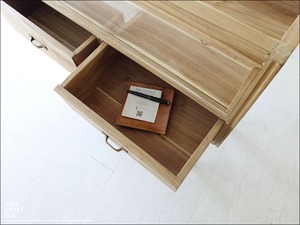 ・素材 : チーク総無垢、ガラス、真鍮(取っ手)、(引き出しの底のみ合板)