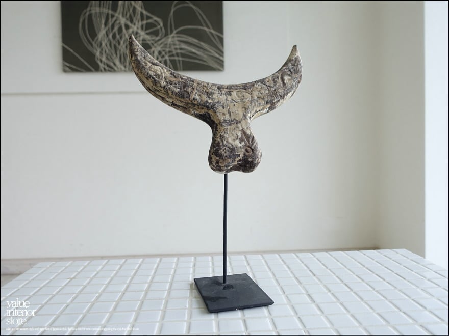 水牛をモチーフにして独特なペイントで仕上げられたオブジェ。カフェの装飾などアクセントのある雰囲気づくりにもぜひお役立てください。