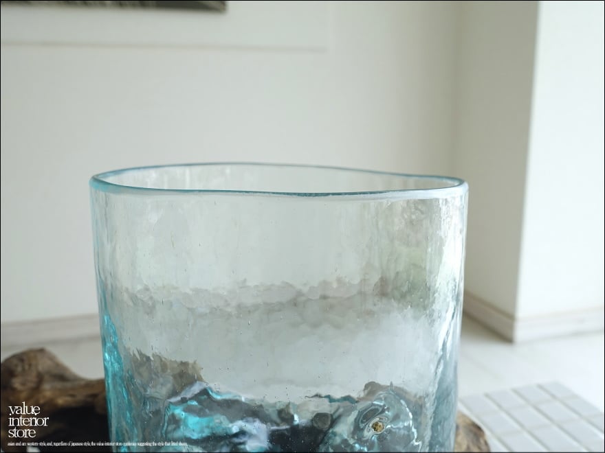 硝子フラワーベースKyli/LN-05 花瓶 メダカ鉢 めだか鉢 プリミティブガラスベース 吹きガラス 手作り 一点物 自然な様