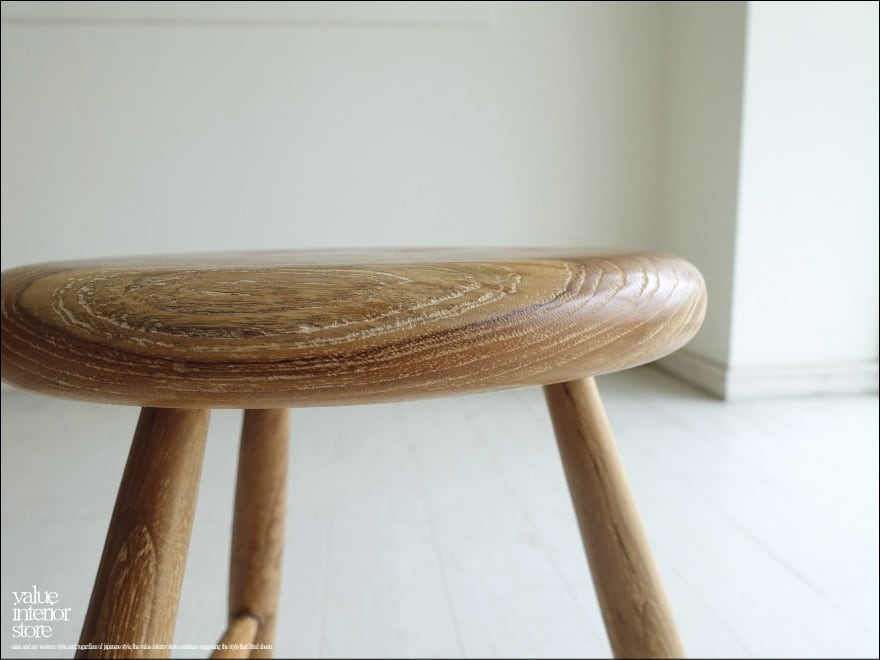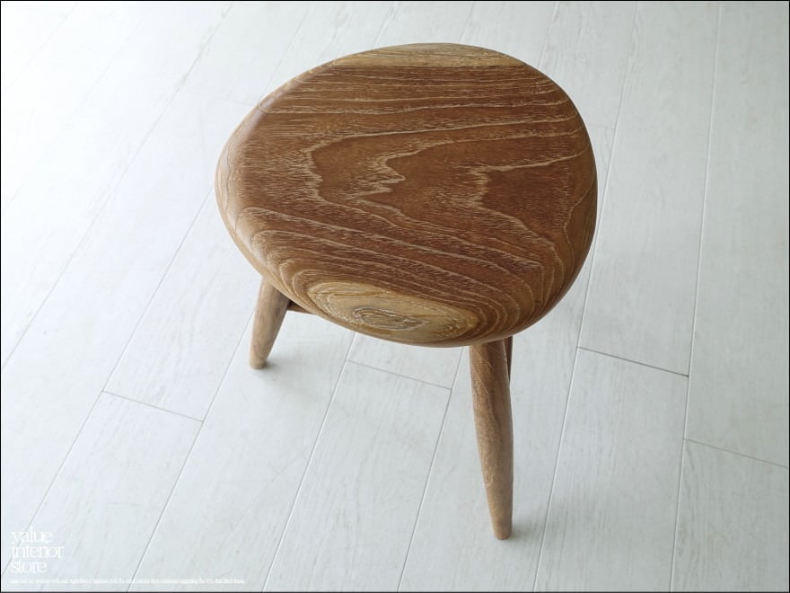 ナチュラルな座面にはチーク材の個性的な木目が現れていて、ナチュラルな雰囲気を存分に楽しめるスツール。細身の脚ですがそれぞれのジョイント部分を丁寧に製作していますので、とてもしっかりとした頑丈な作りです。表面は無垢材の素朴な質感を引き立たせています。