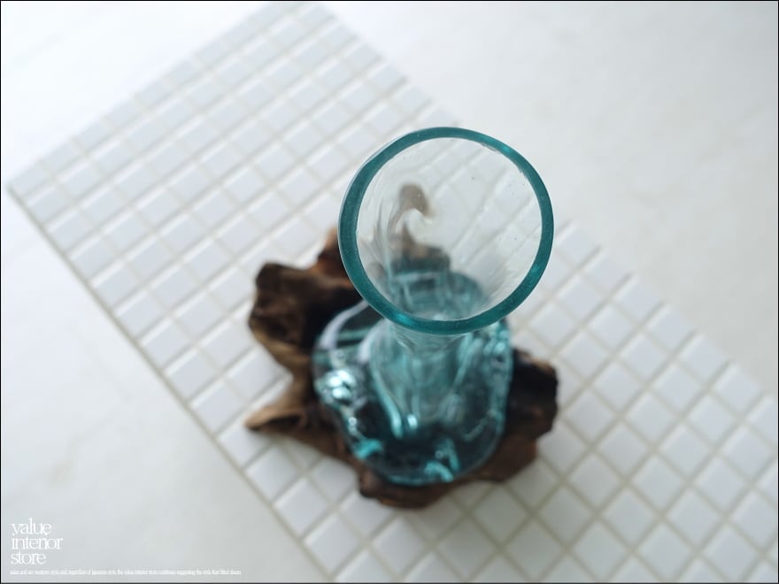 硝子フラワーベースSin11 花瓶 プリミティブガラスベース 手作り 一輪挿し 一点物 ハンドメイド 無垢材 自然な様