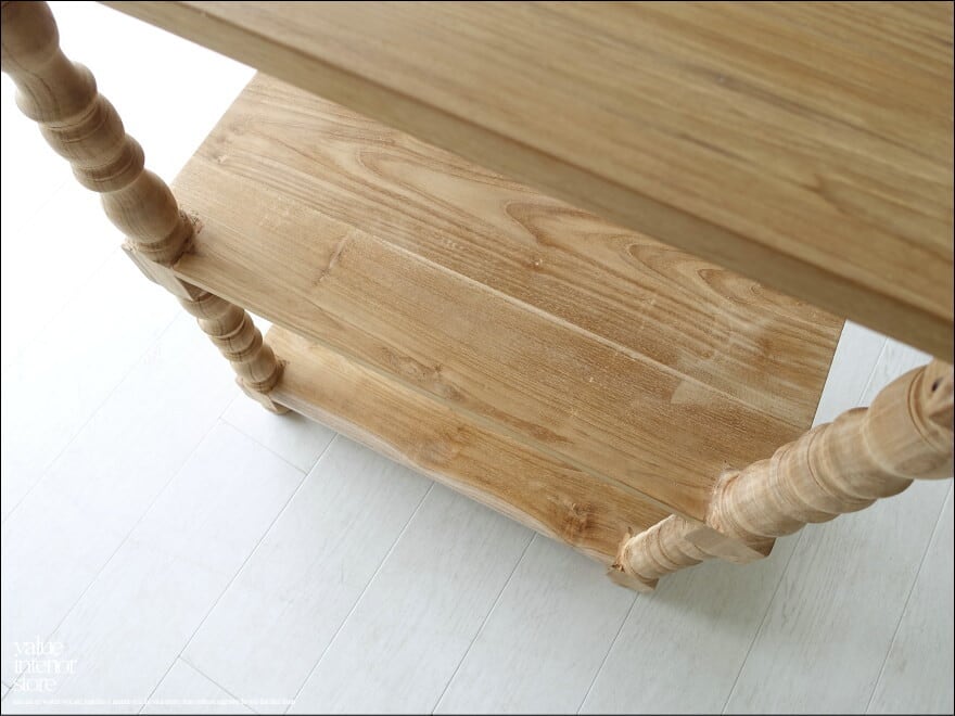 木目やフシなどの変化が個性的で素材感が引き立つチークシェルフ。