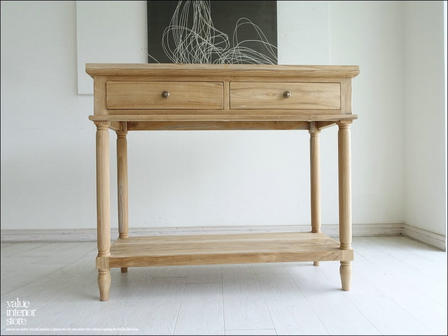 レジカウンターやコンソールテーブル、陳列台などの什器としてお使いいただけます。無塗装の表面は変わりゆくチーク材のお色味もお楽しみいただけます。雑貨屋さんや美容室のレジ台にもぜひどうぞ。