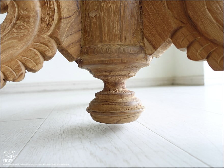 ◇日本製のような正確さは無いかもしれませんが、一つ一つ出来上がるまでの殆どの製作工程を手作業で行う、インドネシア家具職人たちの手づくり製法はとても暖か味が感じられます。細かな傷、ひび割れやフシ穴、お色の濃淡、また反りなどの無垢材特有の”暴れ”や修理痕が見受けられる場合がございますが、無垢材の素材や特徴、また手づくりのテイストとして工業品にはない自然の質感をお楽しみ下さい。