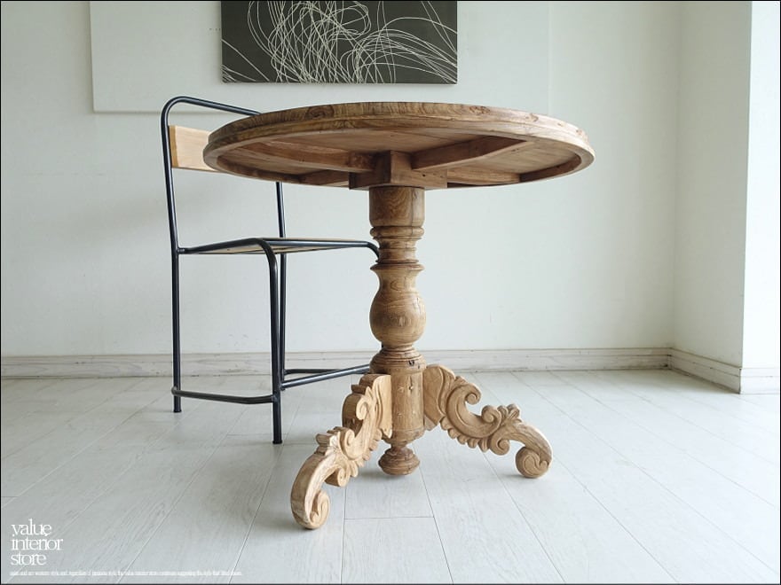 オールドチークチーク無垢材 丸テーブルCircle/Φ72cm サイドテーブル 円形 古材家具 カフェテーブル 表面再仕上済 idavin