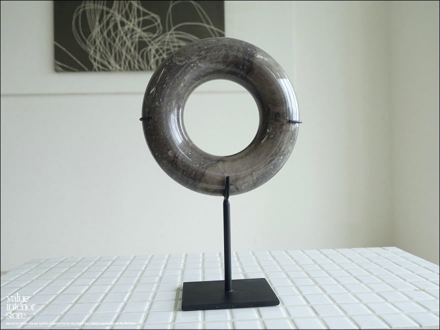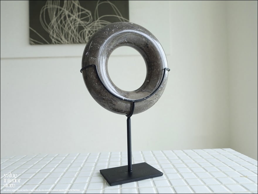 天然大理石オブジェCir/GY マーブル 置物 装飾 天然石アート 円形オブジェ カフェ装飾 飾り デコレーション 置き物 W17xH28cm