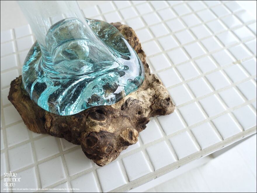 硝子フラワーベースSin12 花瓶 プリミティブガラスベース 手作り 一輪挿し 一点物 ハンドメイド 無垢材 自然な様