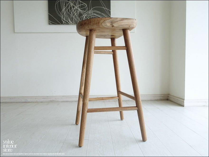 チーク無垢材 バースツールBol/NR 椅子 カウンターチェア ハイスツール イス 素朴 ナチュラルインテリア 世界三大銘木 H75cm