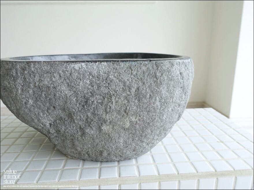 一つとして同じ形のない自然に作られたボウル状の形と色合いや質感に、落ち着いた和の雰囲気が感じられる自然石の洗面ボウル。