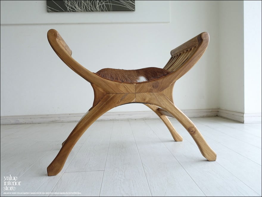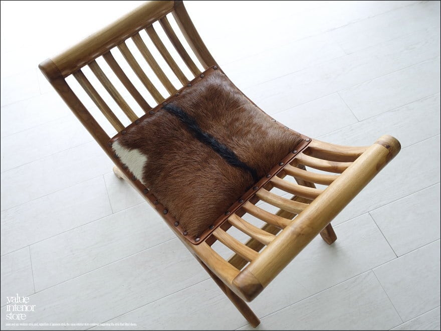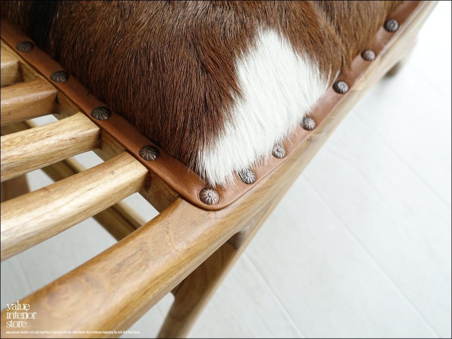 チーク材 無垢材 シングルソファfurPuti/09 ベンチ 椅子 イス スツール 本皮 毛皮 革製 一人掛け 皮張り チェア 銘木家具