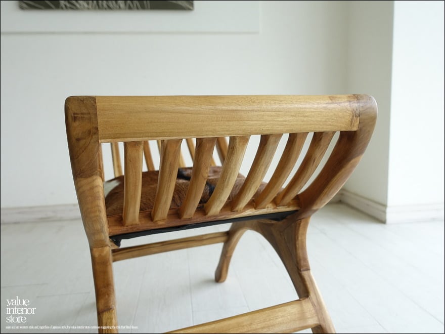 チーク無垢のウッドフレームに毛皮付きレザーの座面を組み合わせたスツール。ナチュラルな色合い、フォルムも独特で置いてあるだけで存在感があります。フレームのチークは無塗装でワックスフィニッシュのみのシンプルさで、渋く変わり行くチーク独特の色の変化(いわゆる徐々にチークカラーへの変化)をお楽しみいただけます。