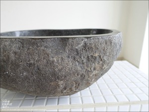 一つとして同じ形のない自然に作られたボウル状の形と色合いや質感に、落ち着いた和の雰囲気が感じられる自然石の洗面ボウル。