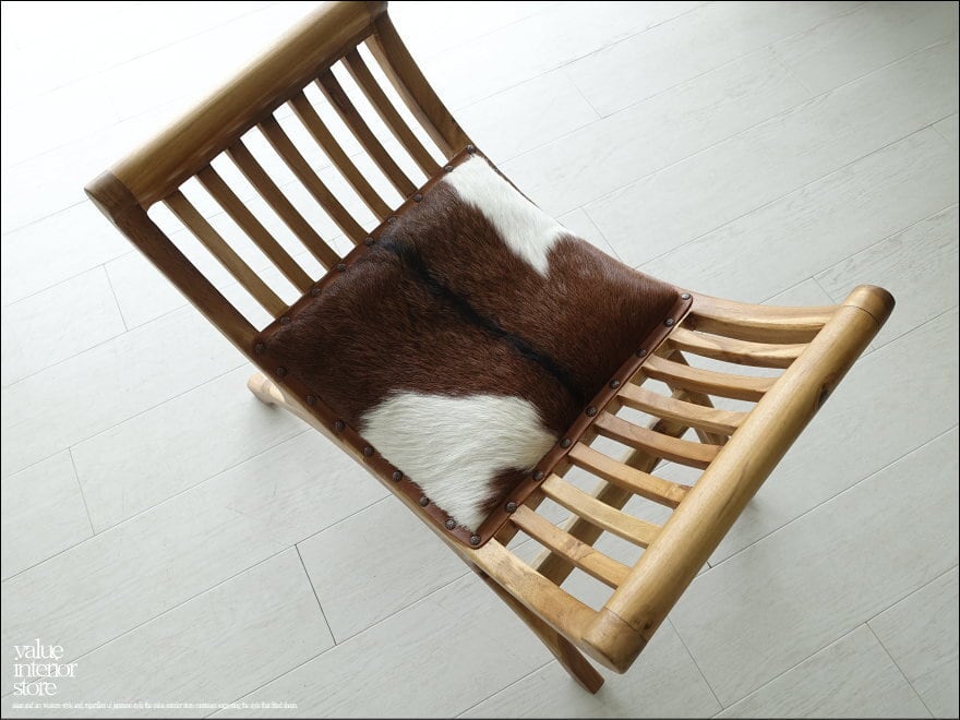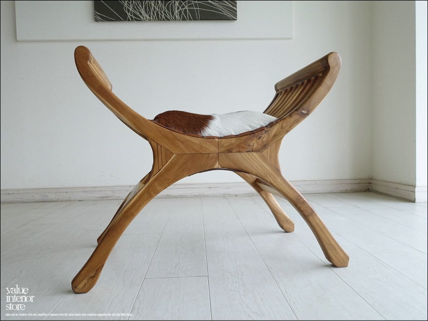 チーク材 無垢材 シングルソファfurPuti/10 ベンチ 椅子 イス スツール 本皮 毛皮 革製 一人掛け 皮張り チェア 銘木家具