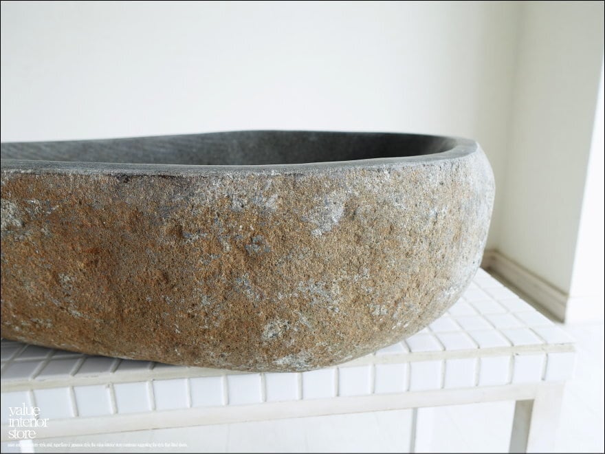 手洗鉢 自然石 洗面ボウルL-A48 洗面器 手洗いボウル 手洗い器 ウォッシュボウル 洗面資材 洗面材料 W56.5 x D41.5 x H15cm