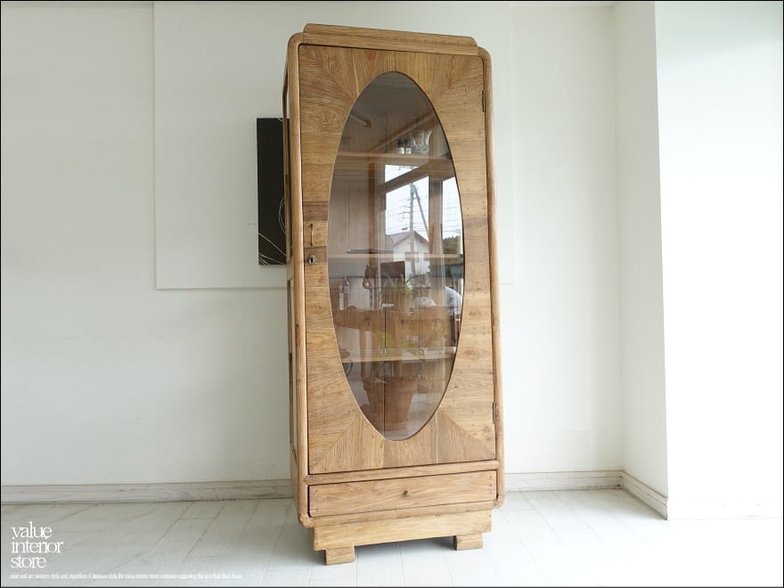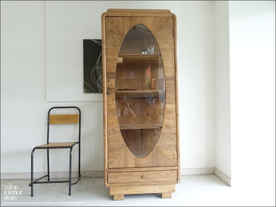 チーク無垢材 ヴィンテージキャビネットBols 食器棚 ショーケース 陳列棚 什器 アンティーク飾り棚 再生家具 表面再仕上 世界三大銘木 idavin