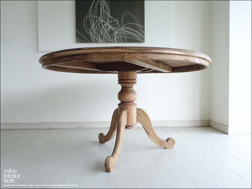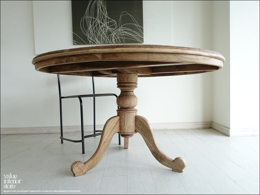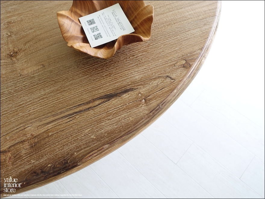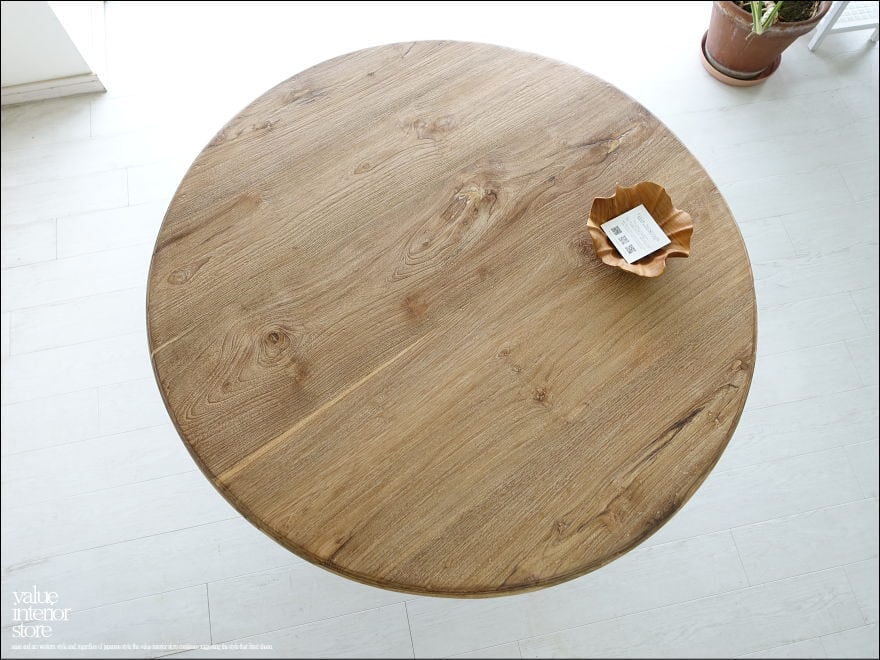 ヴィンテージ丸テーブルwalz120 円形テーブル ダイニングテーブル 什器 アンティーク チーク無垢材 一点物 表面仕上済 再生家具 Φ120cm idavin