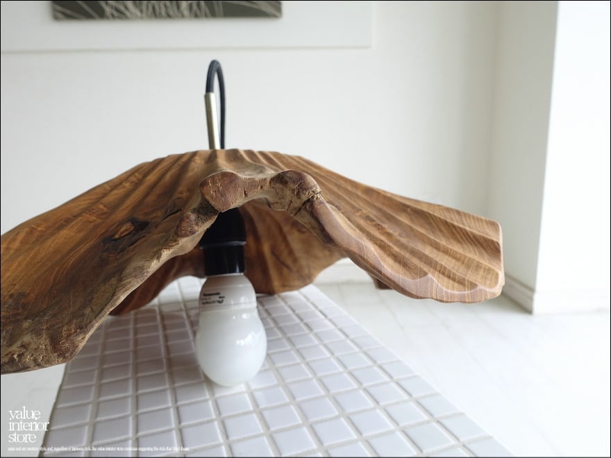 プリミティブな形で落ち着いた雰囲気が感じられるチーク無垢材のペンダントライト“flareW”シェードの表と裏の両方に加工を施した新作で、無垢材に照らされた柔らかな明かりがお部屋の空間を優しく照らしてくれます。天井電源コネクターは、一般家庭用の引っ掛けシーリングタイプ(安全ストッパー付き)。・コードは長さ調節不可。電源は壁スイッチ操作。