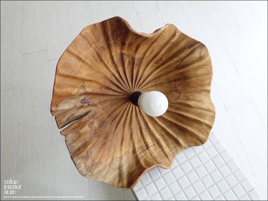 ◇日本製のような正確さは無いかもしれませんが、1点1点出来上がるまでの殆どの工程を手作業で行うインドネシア職人たちの手造りの製法にはとても暖か味が感じられます。ひび割れやフシ、穴、また反りなどの無垢材特有の”暴れ”、器具とシェードの中心の傾きなど見受けられる場合がございますが、素材や手づくりのテイストとして工業品にない自然の質感をお楽しみ下さい。