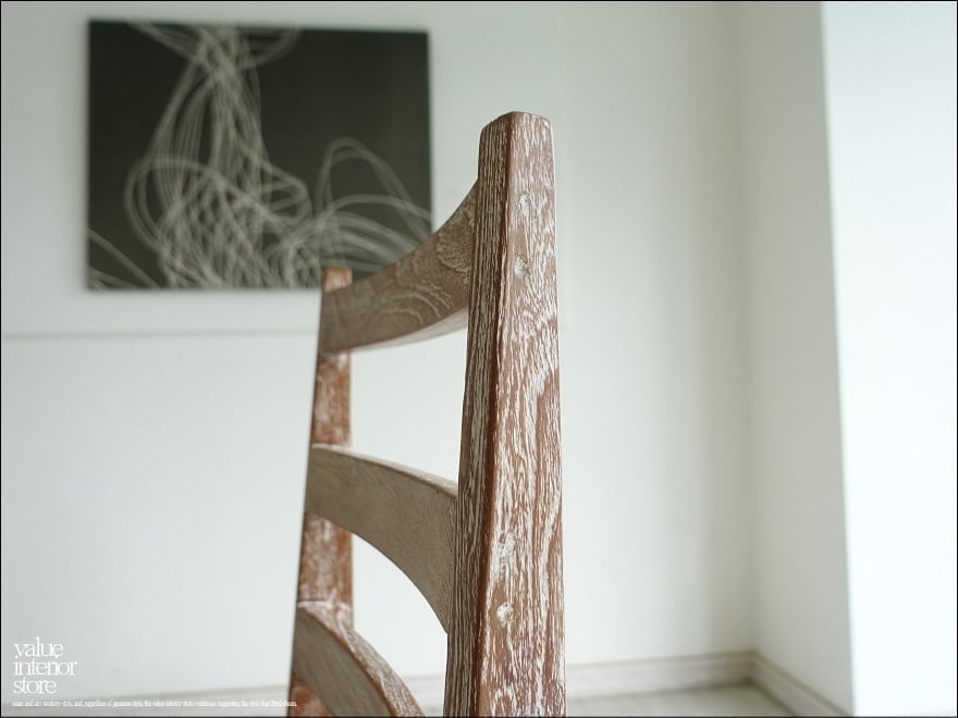 ヴィンテージ家具でしか味わえない深みのある落ち着いた雰囲気が漂うダイニングチェアAig/NW。ワイヤーブラシで表面に凹凸を付けた後、白色を塗布してさらにサイディングすることで凹みに白色を残す表面仕上により、独特な風合いを感じさせます。シンプルなデザインながら無垢材ならではの上質な質感が一層際立っています。スローダウンした空間づくりにどうぞお役立てください。