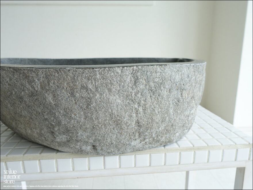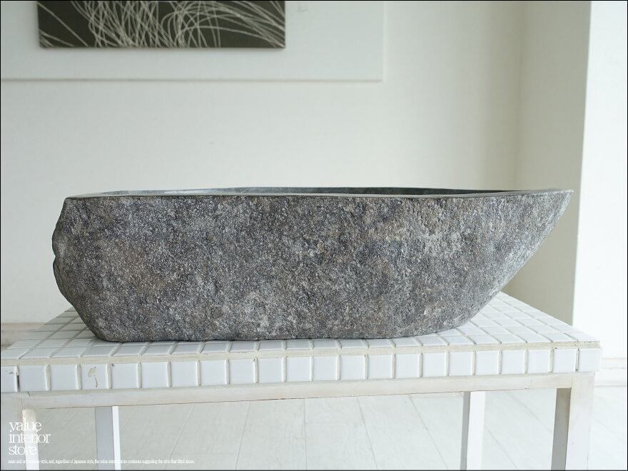 手洗鉢 自然石 洗面ボウルL-A52 洗面器 手洗いボウル 手洗い器 ウォッシュボウル 洗面資材 洗面材料 W55 x D36 x H15cm