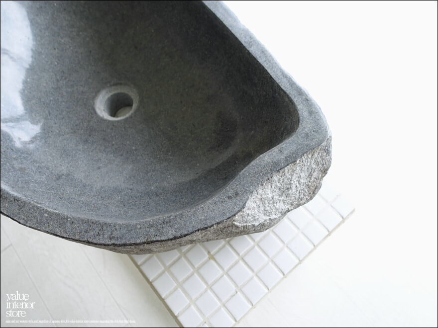 一つとして同じ形のない自然に作られたボウル状の形と色合いや質感に、落ち着いた和の雰囲気が感じられる自然石の洗面ボウル。ご自宅やお店の手洗い鉢として、またエクステリアの立水栓の水受けのアクセントとしてぜひお役立てください。