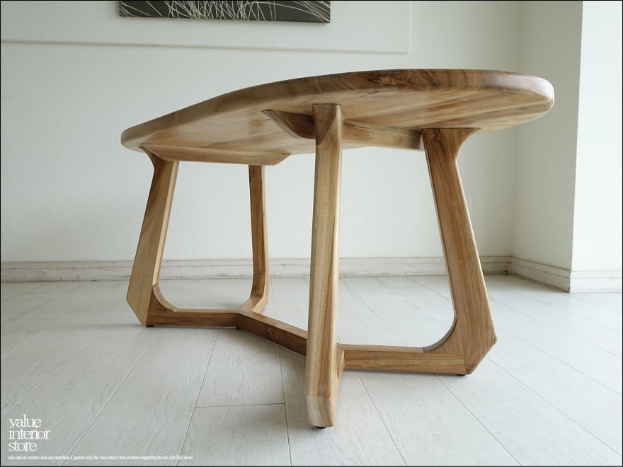 明るいナチュラルな木肌が新鮮なチーク無垢材のリビングテーブル”Liz”。丸みのある天板を持ち上げるような形状の脚が特徴的で、ソリッドの板を使用して製作したテーブルはズッシリとした重さがあります。おくつろぎをいただくお部屋の中心となるリビングで、落ち着きのある雰囲気をぜひお楽しみください。
