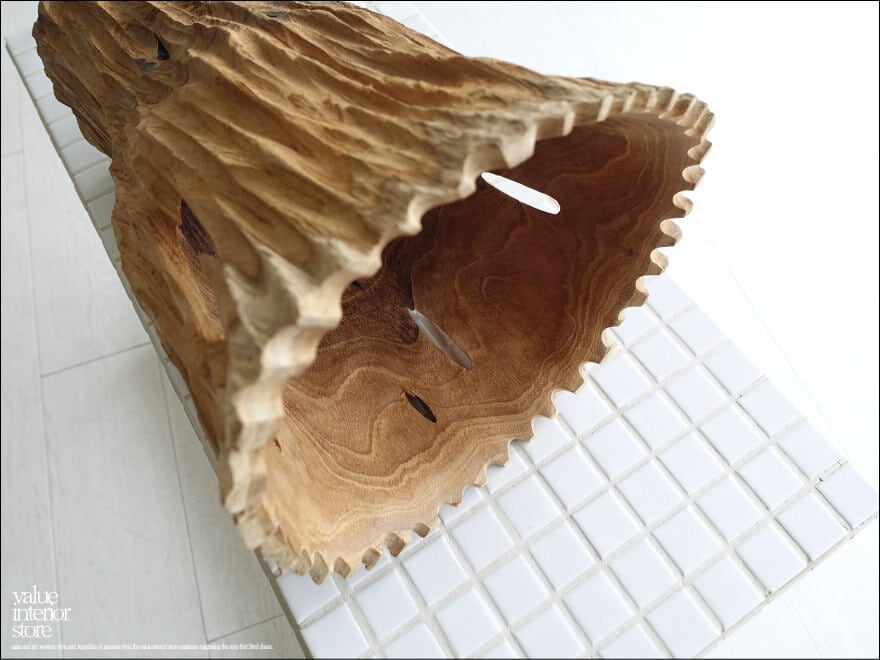 ◇日本製のような正確さは無いかもしれませんが、1点1点出来上がるまでの殆どの工程を手作業で行うインドネシア職人たちの手造りの製法にはとても暖か味が感じられます。ひび割れやフシ、穴、また反りなどの無垢材特有の”暴れ”、器具とシェードの中心の傾きなど見受けられる場合がございますが、素材や手づくりのテイストとして工業品にない自然の質感をお楽しみ下さい。