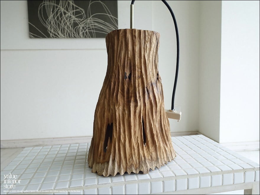 素朴な質感がゆったりとした雰囲気に包み込むチーク無垢材のペンダントライト“Aigu”アグレッシブなシェード表面のところどころから無垢材に照らされた柔らかな明かりがこぼれ、空間を優しく照らしてくれます。天井電源コネクターは、一般家庭用の引っ掛けシーリングタイプ(安全ストッパー付き)。・コードは長さ調節不可。電源は壁スイッチ操作。