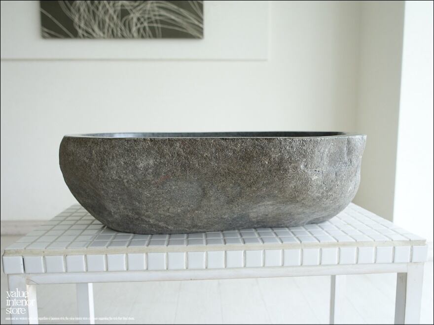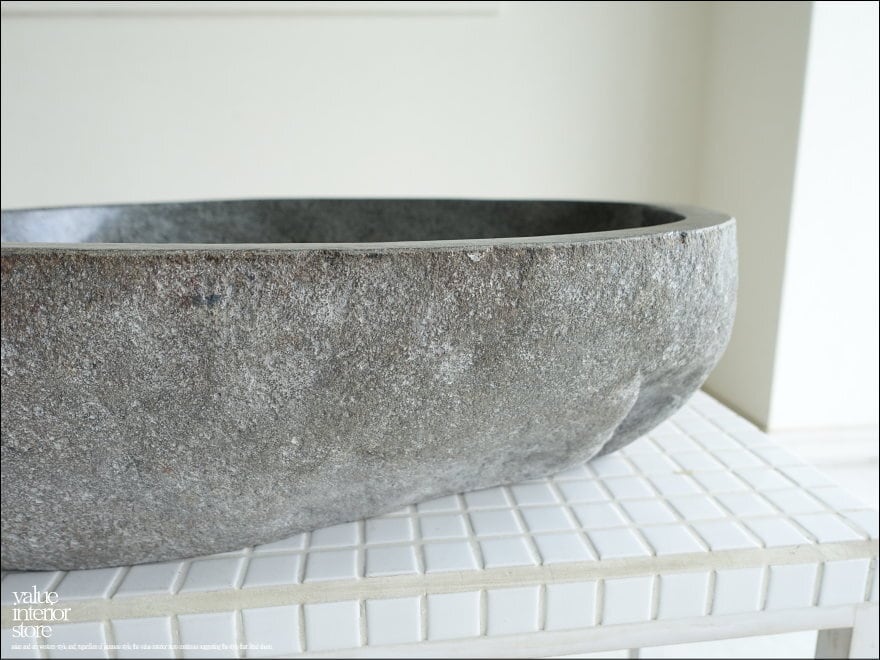 手洗鉢 自然石 洗面ボウルL-A54 洗面器 手洗いボウル 手洗い器 ウォッシュボウル 洗面資材 洗面材料 W50 x D39.5 x H15.5cm