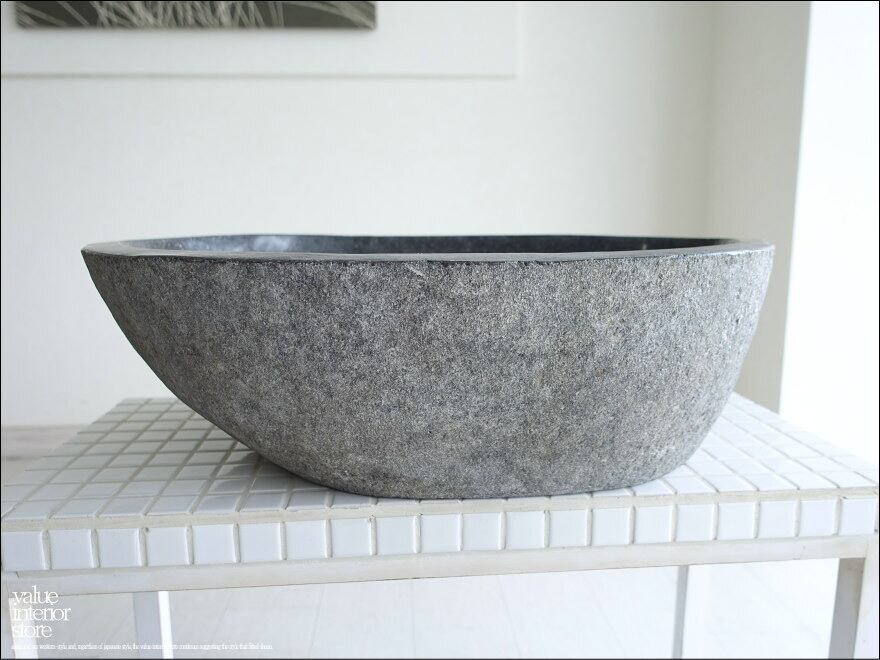 手洗鉢 自然石 洗面ボウルL-A56 洗面器 手洗いボウル 手洗い器 ウォッシュボウル 洗面資材 洗面材料 W50.5 x D37.5 x H15.5cm