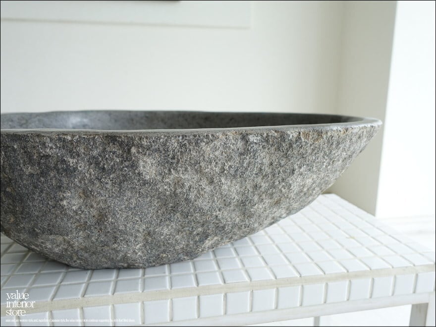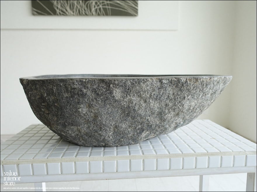 手洗鉢 自然石 洗面ボウルL-A61 洗面器 手洗いボウル 手洗い器 ウォッシュボウル 洗面資材 洗面材料 W52.5 x D38.5 x H15.5cm