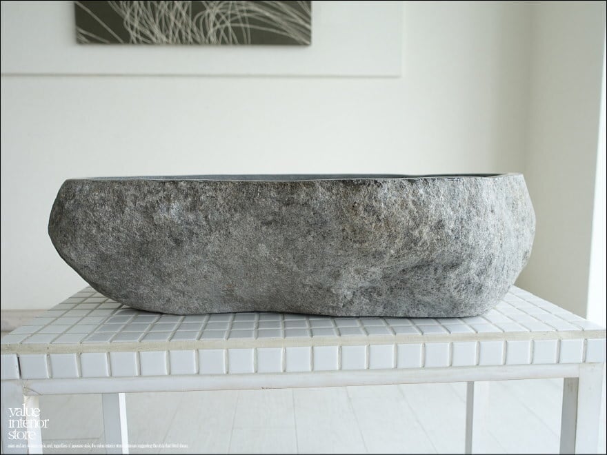 手洗鉢 自然石 洗面ボウルL-A61 洗面器 手洗いボウル 手洗い器 ウォッシュボウル 洗面資材 洗面材料 W57 x D37.5 x H15cm idawash