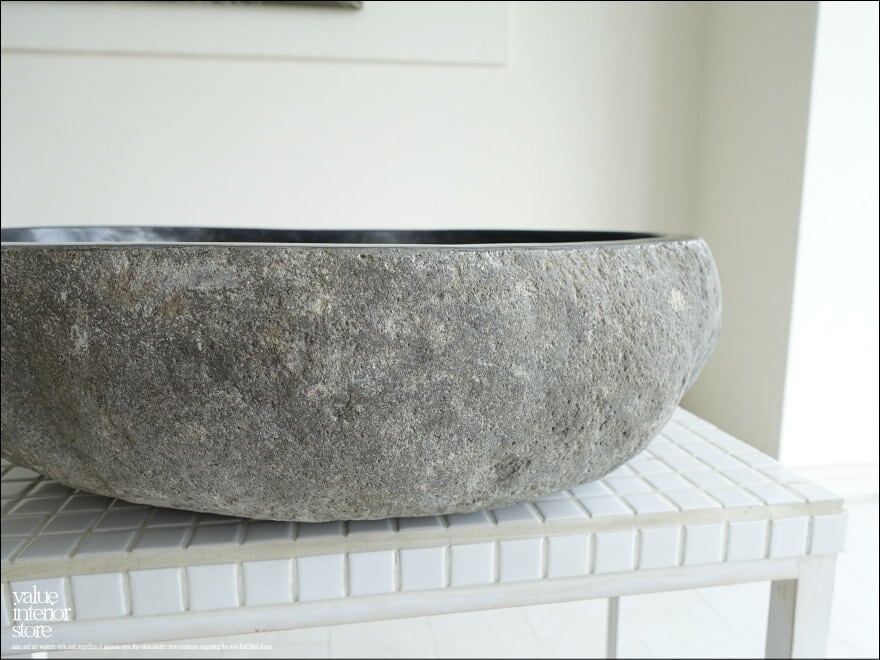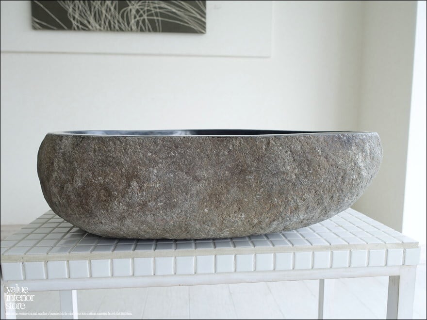 手洗鉢 自然石 洗面ボウルL-A64 洗面器 手洗いボウル 手洗い器 ウォッシュボウル 洗面資材 洗面材料 W55 x D42 x H15.5cm idawash
