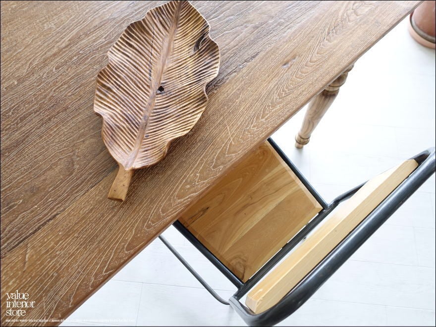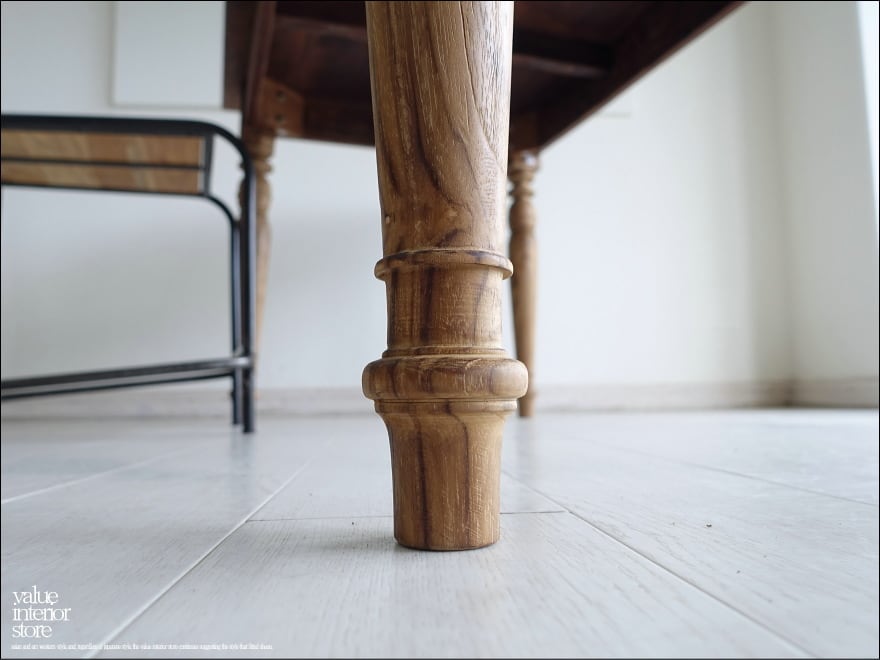細身でバランスの取れた遊び心に溢れる脚のデザインが特徴的で、古いチーク材ならでは余裕を感じさせる落ち着きには刻み込まれた歴史すら感じられるようです。飲食店のアクセントテーブルとして、お店の展示テーブルなどスローダウンした雰囲気づくりにもぜひお役立てください。