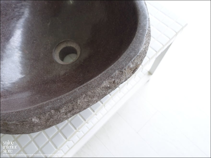 一つとして同じ形のない自然に作られたボウル状の形と色合いや質感に、落ち着いた和の雰囲気が感じられる自然石の洗面ボウル。ご自宅やお店の手洗い鉢として、またエクステリアの立水栓の水受けのアクセントとしてぜひお役立てください。