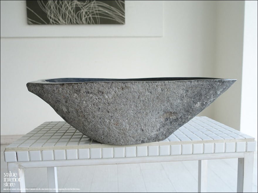 ◇日本製のような正確さは無いかもしれませんが、1点1点出来上がるまでの殆どの工程を手作業で行うインドネシア職人たちの手造りの製法にはとても暖か味が感じられます。また自然石の特徴上、外側の表面は穴や打ち傷、欠けやひび割れ、本体に傾きなどが見受けられる場合がありますが、素材のテイストとしてご了承ください。