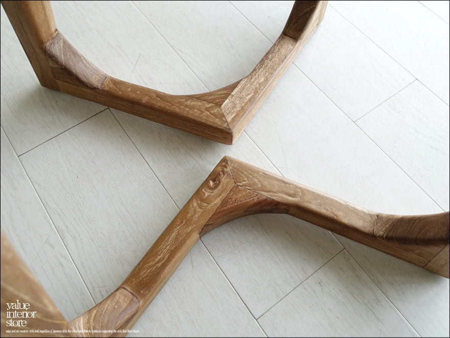 天板をバランスよく安定させるために、内側に入った脚の形状が印象的なチーク無垢材の“カフェテーブルbulat“。厚みのある天板下を削ることでよりシャープでシンプルなデザインになっています。細かく入った木目が品質の良さを感じさせてくれ、無垢材のそのままの明るい質感で柔らかな空間に包み込んでくれます。一息ついていただくコーヒーテーブルとしてお勧めいたします。