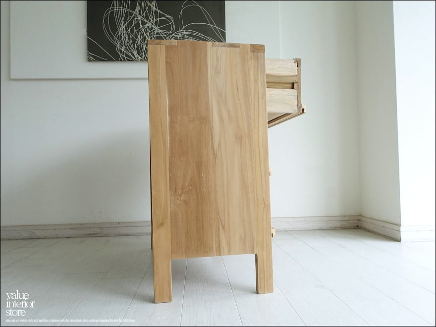 ◇チーク無垢材は人のお肌同様に、長時間、直射日光や冷暖房の風のあたる場所や湿気、乾燥が著しい場所を嫌います。反りや割れ、退色の原因になりますのでお避けください。