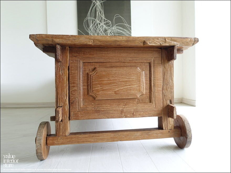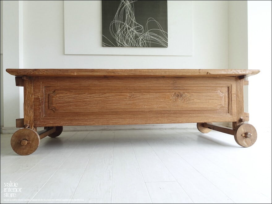 チーク無垢材 ヴィンテージリビングテーブルariot トロリーテーブル センターテーブル 什器 アンティーク 再生家具 W188cm
