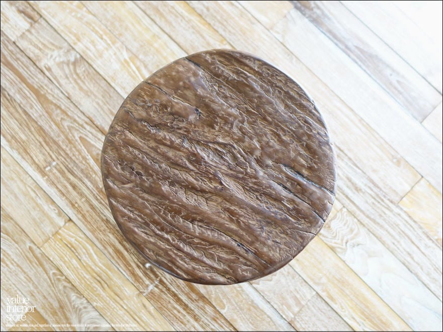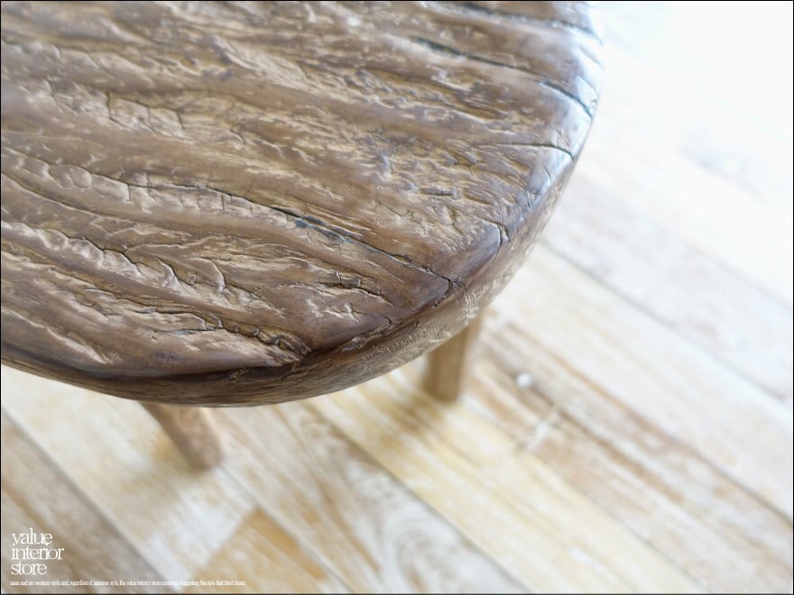 オールドチークならではの渋く落ち着いた雰囲気を持つ丸スツール。座面にはチーク材のアグレッシブで荒々しい個性的な木肌が現れています。