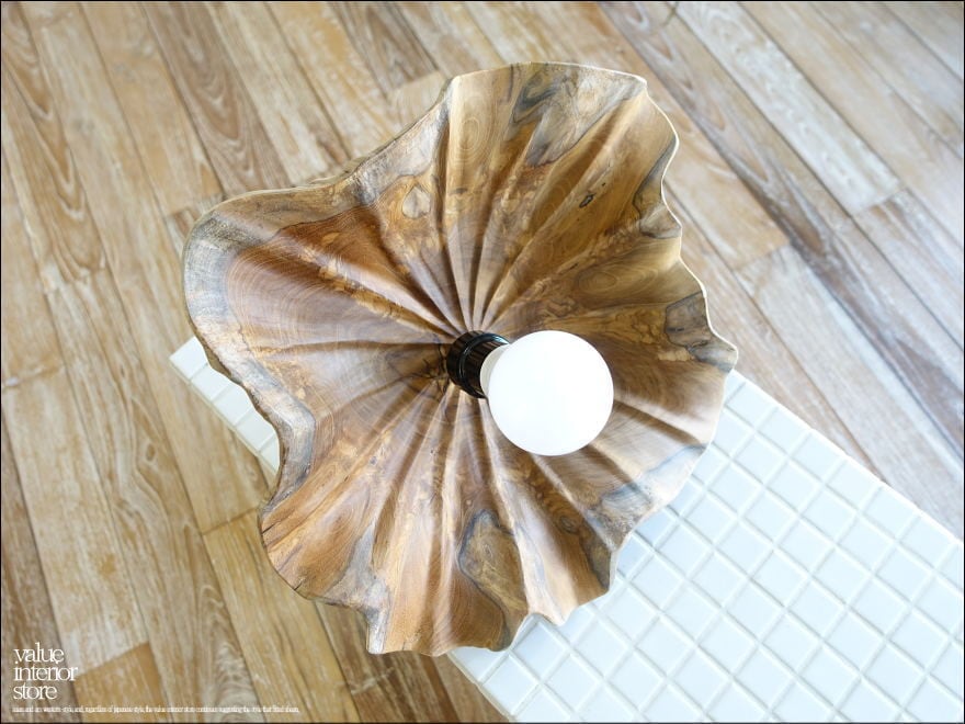 ◇日本製のような正確さは無いかもしれませんが、1点1点出来上がるまでの殆どの工程を手作業で行うインドネシア職人たちの手造りの製法にはとても暖か味が感じられます。ひび割れやフシ、穴、また反りなどの無垢材特有の”暴れ”、器具とシェードの中心の傾きなど見受けられる場合がございますが、素材や手づくりのテイストとして工業品にない自然の質感をお楽しみ下さい。