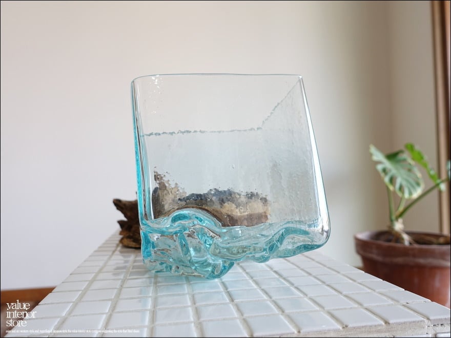 硝子フラワーベースSqli / L-11 花瓶 メダカ鉢 めだか鉢 プリミティブガラスベース 吹きガラス 手作り 一点物 自然な様