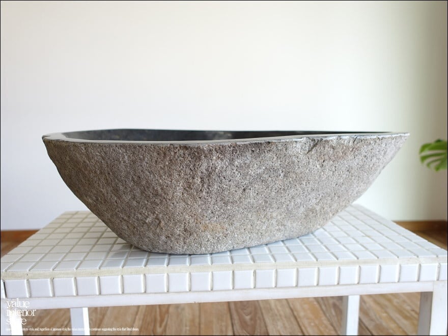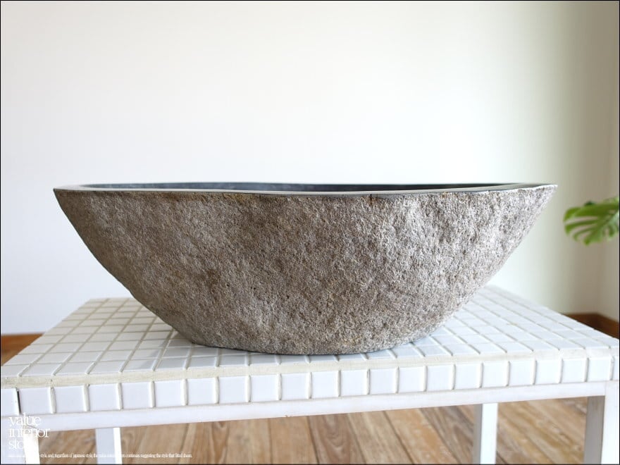 ◇日本製のような正確さは無いかもしれませんが、1点1点出来上がるまでの殆どの工程を手作業で行うインドネシア職人たちの手造りの製法にはとても暖か味が感じられます。また自然石の特徴上、外側の表面は穴や打ち傷、欠けやひび割れ、本体に傾きなどが見受けられる場合がありますが、素材のテイストとしてご了承ください。